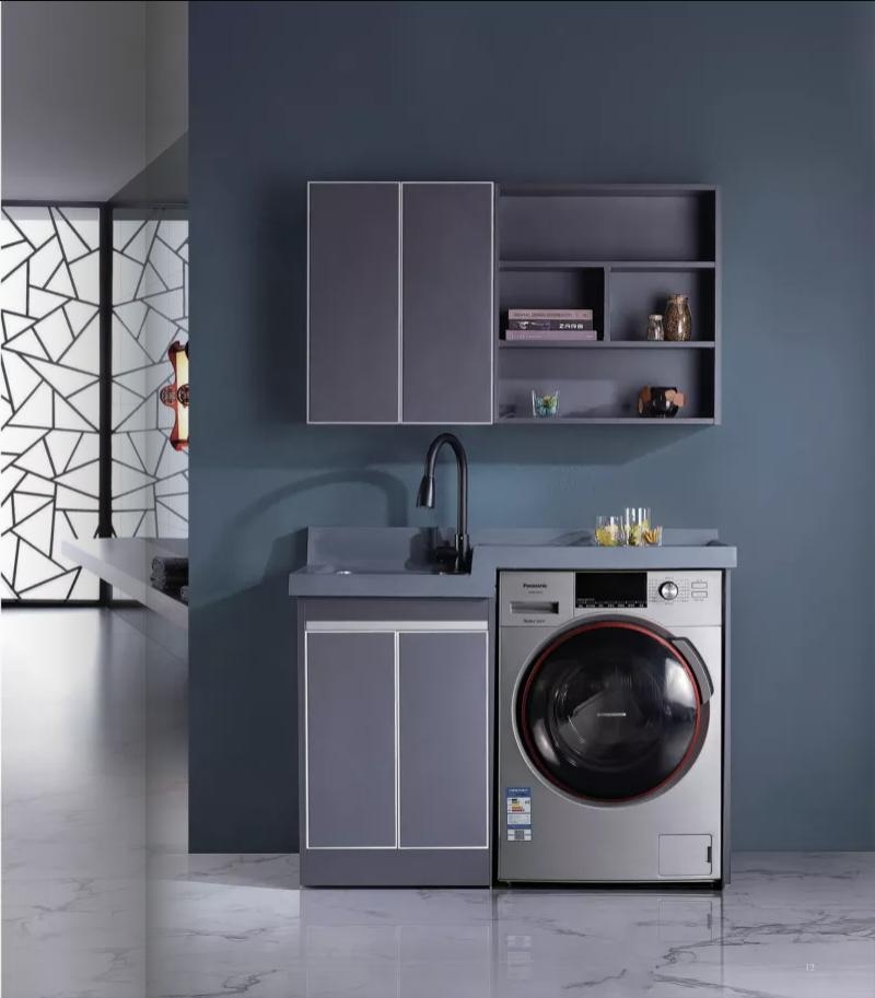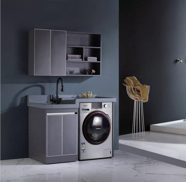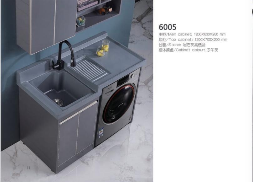 台面岩石灰高低盆;柜体304不锈钢; 柜体颜色:迷迭灰;