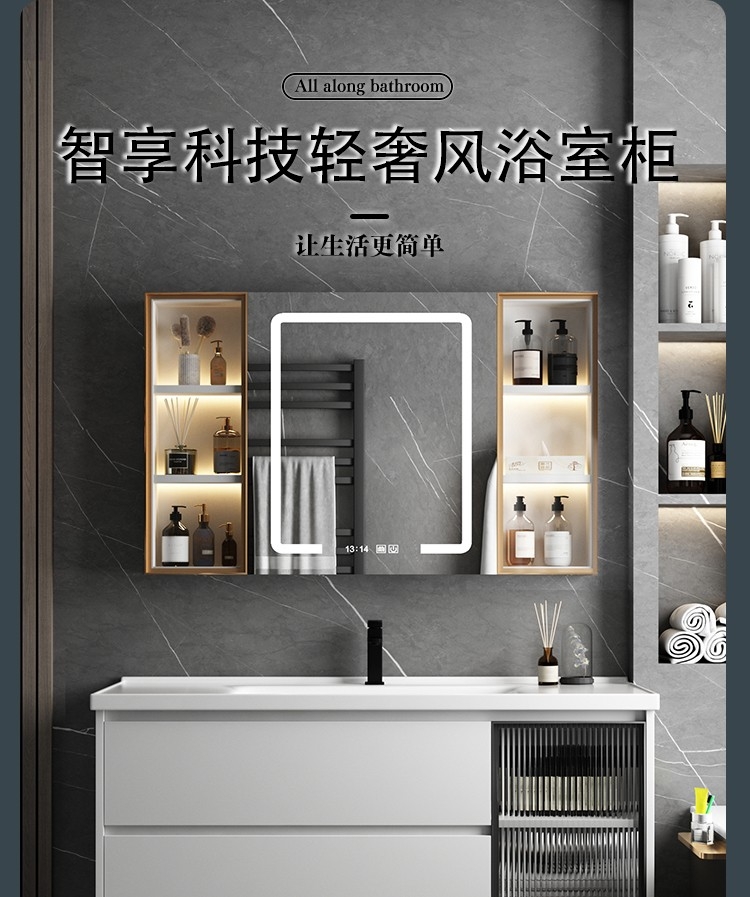 WJA-TG008-80 实木免漆 岩板浴室柜