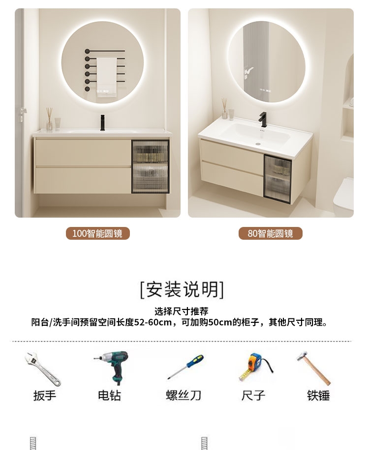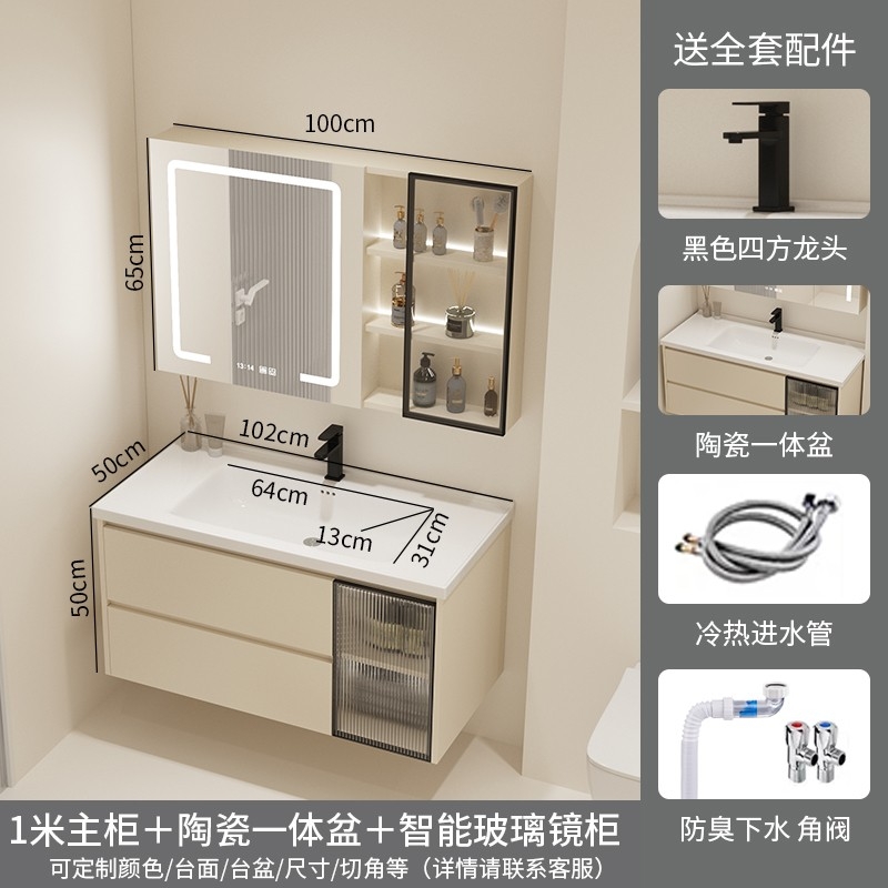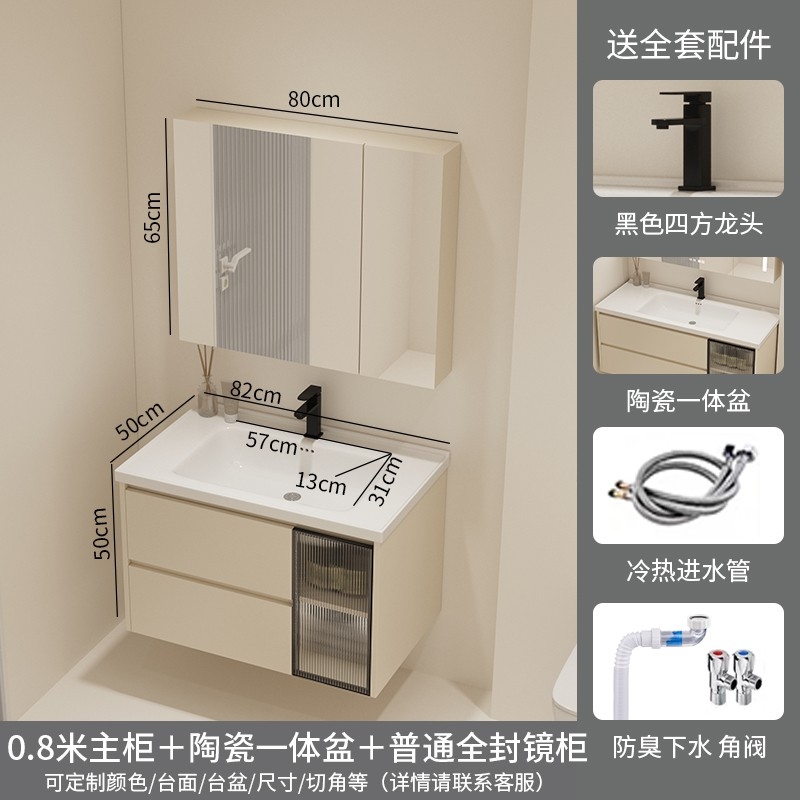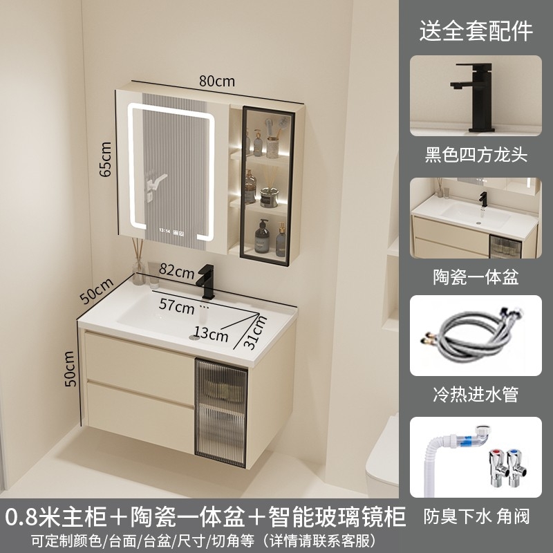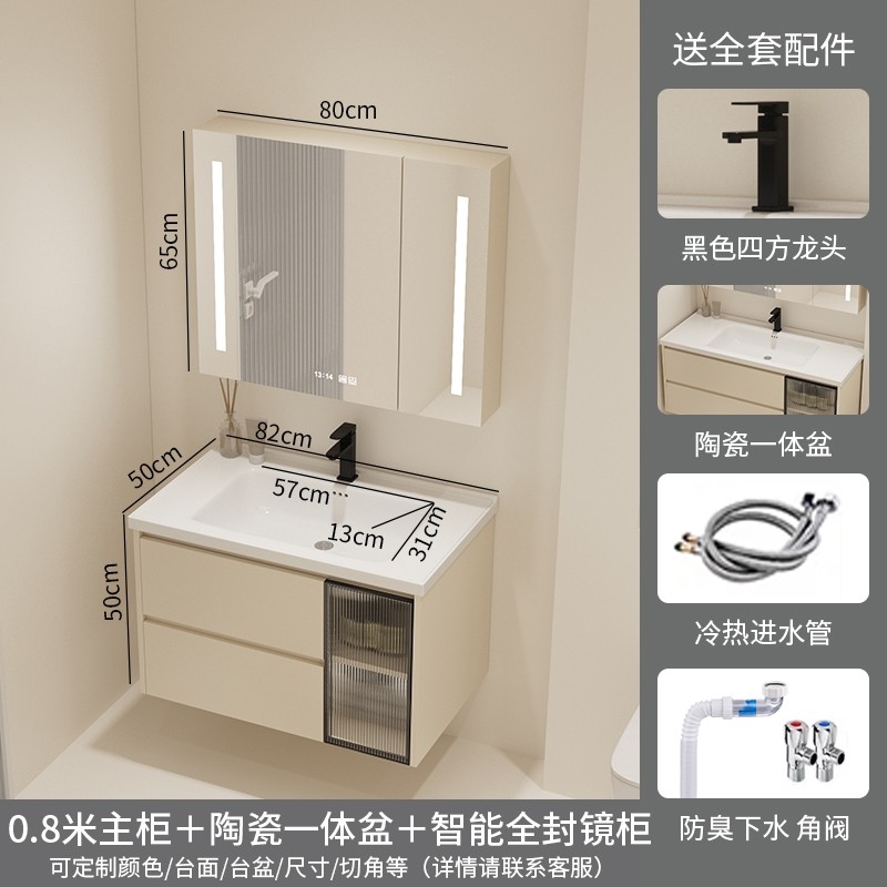 WJA-TG008-80 实木免漆 岩板浴室柜